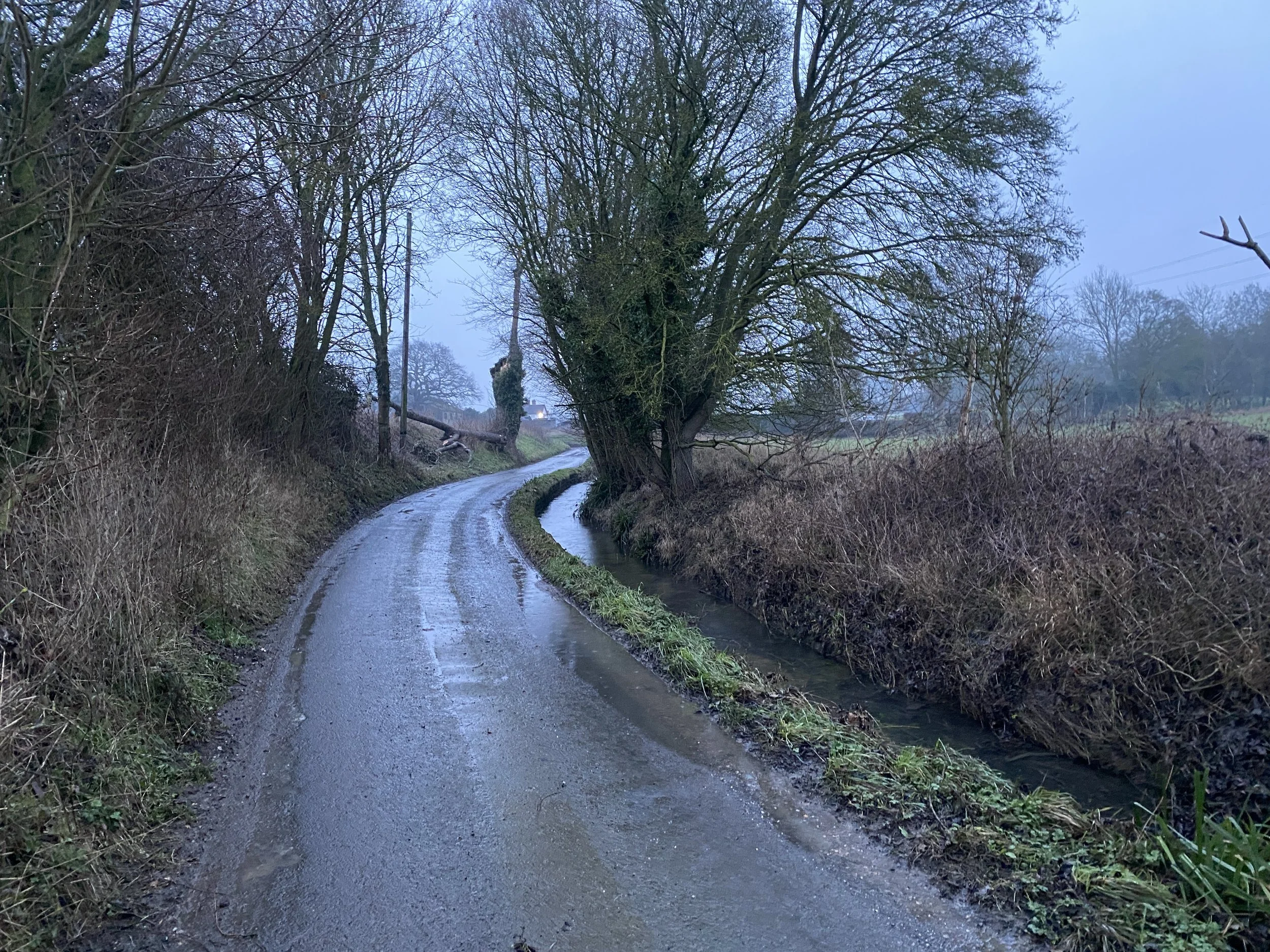 I think again about barriers on the trail. I think about the lack of rest stops, benches and shelters on the way, the lack of frequent and reliable public transport connections to and from the villages we pass through. I think of rickety stiles and sinking ground. We’ve barely come across anyone on the trail, perhaps a dog walker or two. Maybe there is more footfall in warmer months. The land is seeped with water following the wettest January on record.